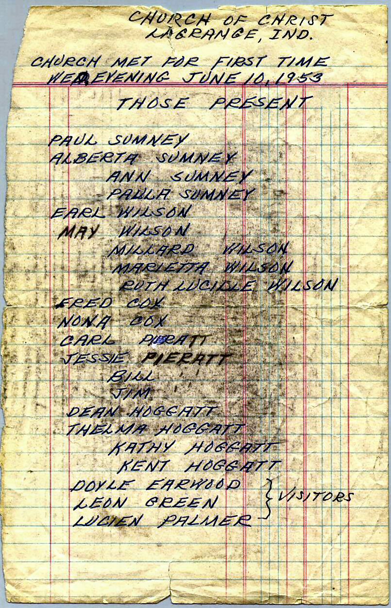 10 Jun 1953 - LaGrange church register of attendance for first meeting
